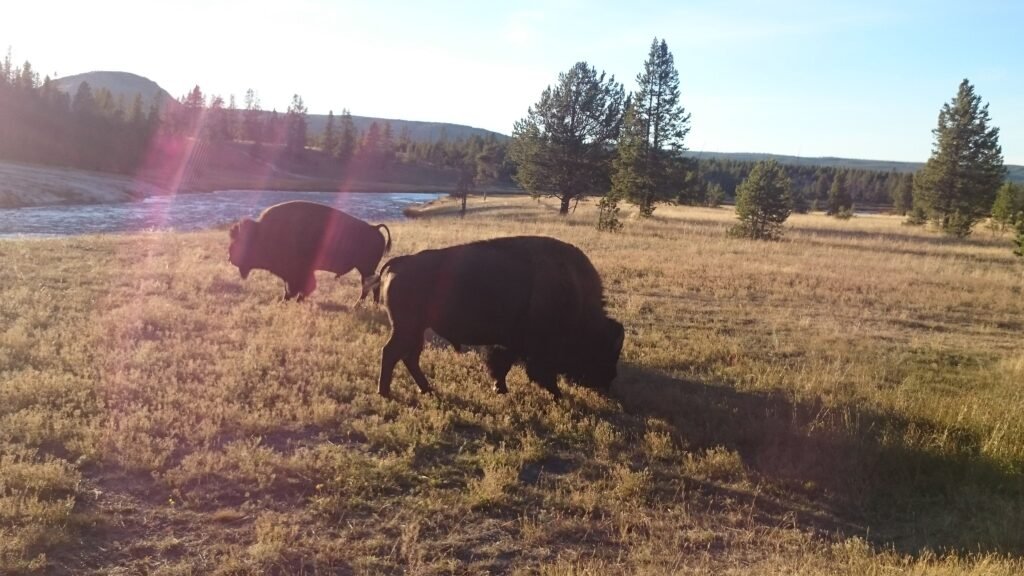 黄石公园拥有世界上最大的野生野牛种群,数量在4000-5000头,野牛有着庞大的身躯,粗壮的肩膀,雄性野牛可达900公斤,雌性约为450公斤。平均寿命15-20年,最快的奔跑速度可达55公里/小时。您游览黄石公园的过程中,经常能看到它们,有时他们成群结队的穿过马路,甚至会躺在马路中央,那么这个时候,所有车辆一定要停下等候他们离开。